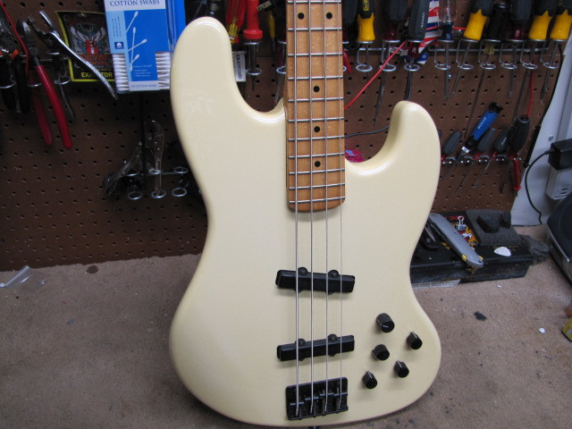 This bass is awesome – one of the best playing in the shop and by far the best Moon we’ve had in. Super low action, 100% orig, issue free, just a quality piece. I really appreciate how the preamp does not kill the natural tone of the bass. It just ‘salt and peppers’ it rather than covering it up. Every note rings. Other than some minor edge wear, theres nothing else to say.