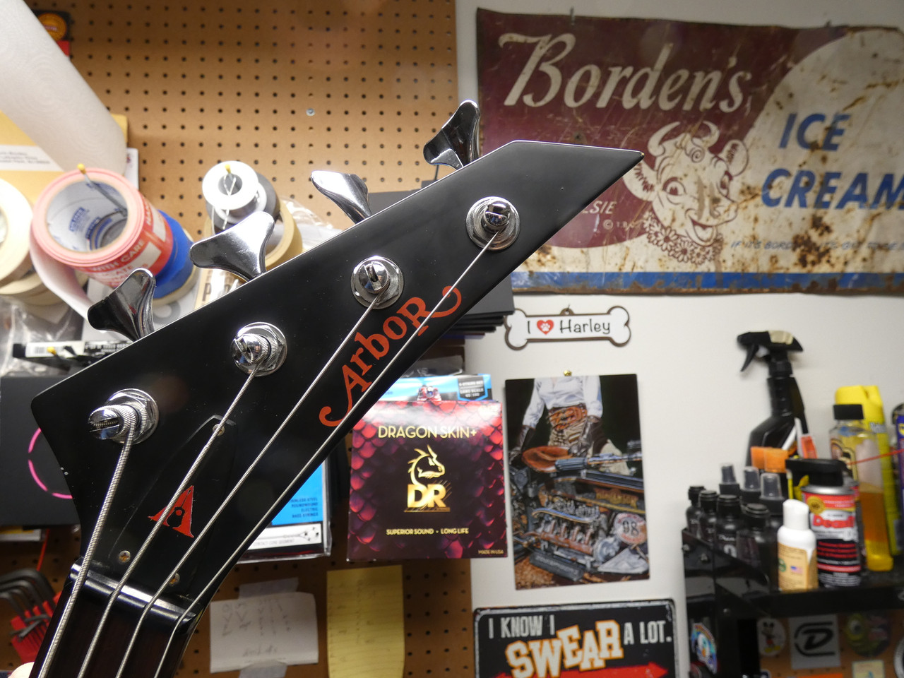 The 80s called and they want their bass back! We have a nice Explorer Bass that plays and sounds really good and looks even better. Super bright and vibrant dayglo style paint. Signal red is a cross between red and orange. It's bright and shiny. The bass has 2 small chips - one on the back about the size of a bb. The other is at the neck pocket, maybe a bb and a half - that was glued back in place - see the pics. She's a fun bass that has a nice tonal signature and growl. Believe it or not, the points are in really good shape. Bass displays minimal player wear. Unfortunately, we don't have a gigbag for this.