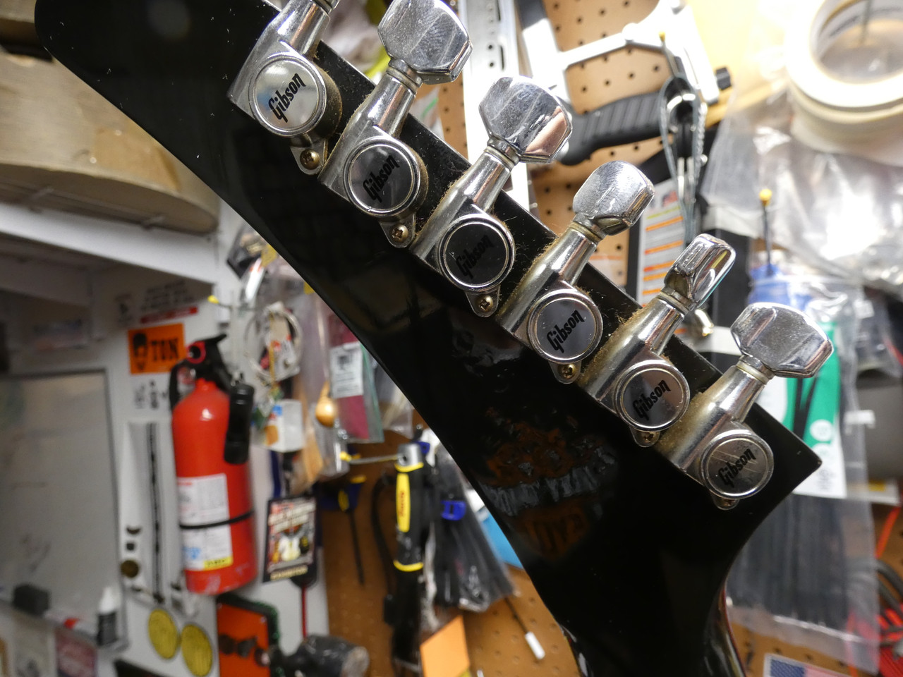 Very cool 1993 '76 Explorer. 92593xxx serial, has the orig hard case. Case is in good shape but the locking latch was popped. The guitar is issue free, sounds, plays and looks awesome, just set up and ready to go. Not chippy or checky, just shows typical black guitar patina and light player wear. Just a note - shipping is a few bucks more because of the oversized case.