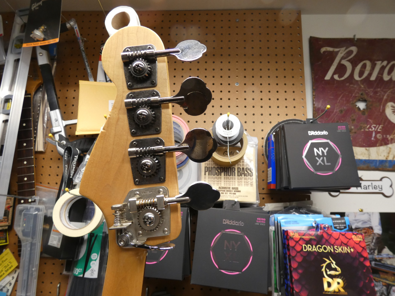 We have a nice playing Aerodyne, CIJ from 2005. Shows player wear as this was gigged but other than the 1 small chip shown, theres no chipped, checks, dents, etc. Just honest patina from being 20+ years old and was played. Has a Hipshot Drop-D installed. Had a bridge cover cleanly installed. Plays and sounds really good, issue free, just set up and ready to roll. Has a gigbag.