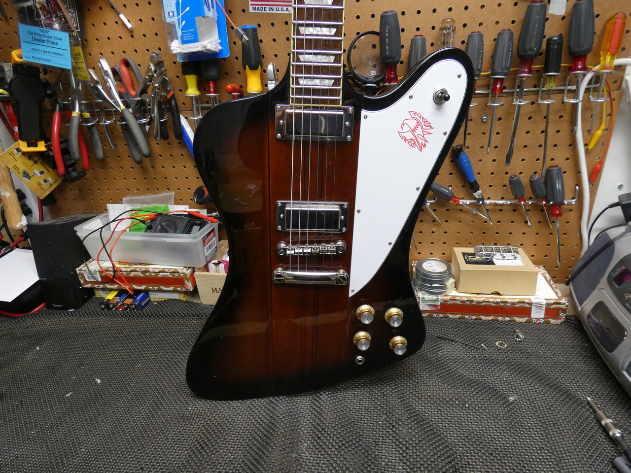 We have an honest never left the house, 1 owner guitar. She shows super clean with no checks, scratches, dents, dings, checks, etc. This was a back up 'couch' guitar. Excellent shape showing little if any player wear and simple patina. Most important is this has the Epiphone original hard case thats as clean as the guitar. This neck thru is a nice one!